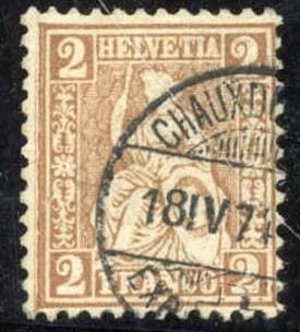 Switzerland 1867 – 1878 Sitting Helvetia Sc 52a Zum 37a F-VF red brown