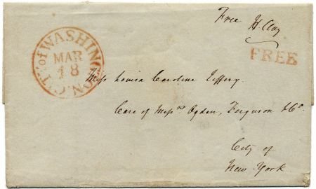 Henry Clay autograph on Free Frank cover with Mar 18, Washington postmarked signed H. Clay and sent to Bloomfield, NJ.