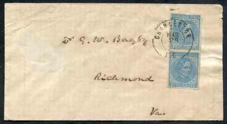 US 7 CSA Cover VF Vertical Pair – Charleston, SC to Richmond, VA VF on front but missing piece on reverse