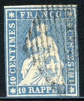Switzerland Sitting Helvetia Sc 23Aa F – VF + Scott unlisted – 4 outer frame lines partial margins around sfr 1300.00