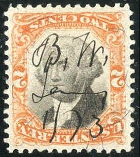 US R135b Revenue VF – XF inverted center, manuscript cancel cv 475.00 lovely stamp with PSE