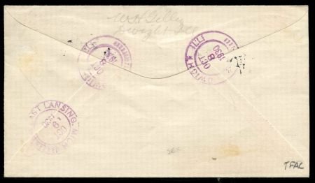 US Dwight, Illinois 1930 (Oct 8) registered cover sent to CA Paige with 558, 561 and 689. Each stamp with a single strike of solid “D” fancy cancel N-239 in black.