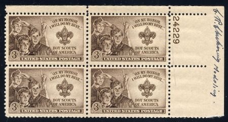 US 995 Autographed Plate Block, Boy Scouts