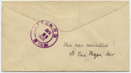 US Las Vegas, Nevada 1929 (Apr) small sized registered cover with 623 and single strike of large six sided Star fancy cancel 643 in bluish black. Cover not been canceled Las Vegas.