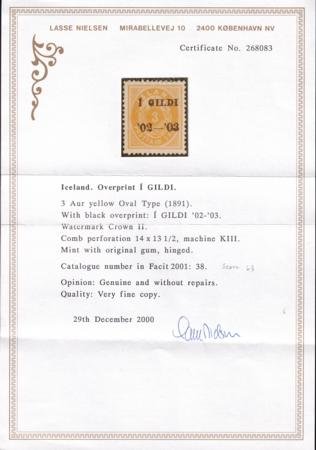 Iceland 63 Facit 38 Mint H VF – XF Nielsen Cert CV $1350
