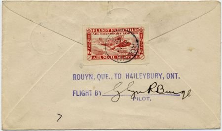 Canada 1926 (Aug 12) Rouyn – Haileybury VF Flight Cover with CL10 signed by the pilot.