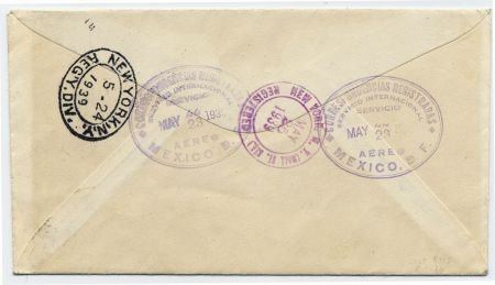 Mexico 1939 (May 23) C93A , 20c Sarabia on Mexico – NY Flight with Sarabia special flight cachet.