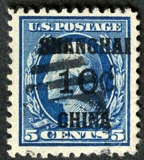 US Shanghai Overprint K5 F – VF + Used cv $140