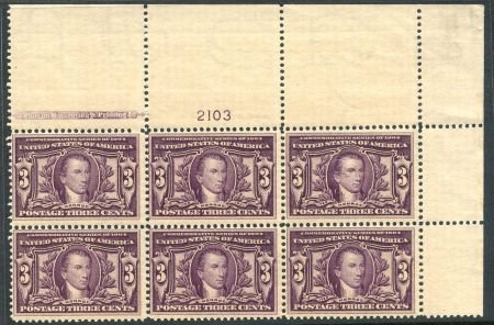 US 325 Early Commemoratives Fine NH UR Corner PB cv $1,305