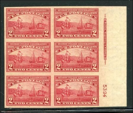 US 373 Early Commemoratives XF NH Right Plate Block, PSE, gum bends – note noted on cert