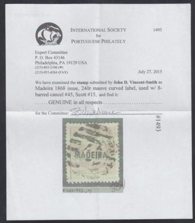 Madeira 15 XF Appearance ISPP Cert as genuine stamp cracked at embossing cv $425