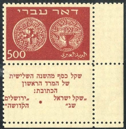 Israel 8 XF/NH Rt. corner tab, tiny spot of dist. gum (Bale cv $1,700.00)