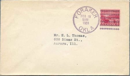 US Oklahoma, Foraker 681 Fancy Cancel Cover, Tiny Clovers