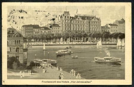 Germany 1923 Early airmail postcard with black and white picture of Hotel Hamburg Vier Jahreszeiten.
