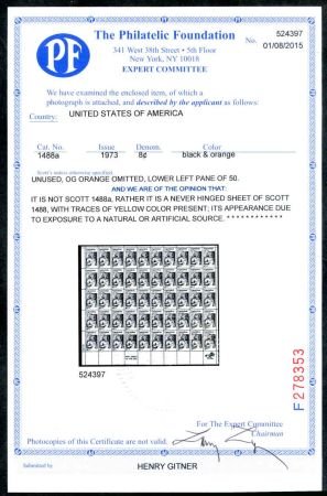 US 1488a Mint Sheet of 50 orange apparently omitted but not genuine