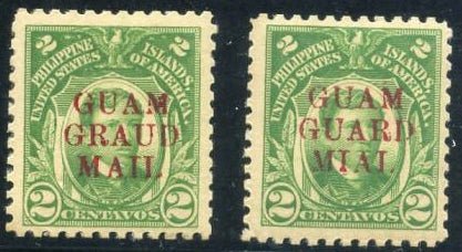 US Possessions – Guam M7a-b Guard Mail F – VF LH Mint “Shiny” OG “Guard” + “Mial” Varieties – Rare! cv $800