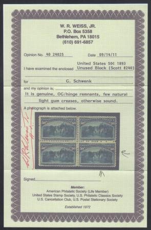 US 240 Early Commemoratives Mint LH F – VF Weiss Cert.