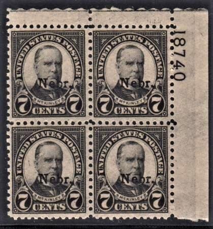 US 676 Mint NH VF Nebraska Overprint Plate Block Pristine # 18740 UR cv $500