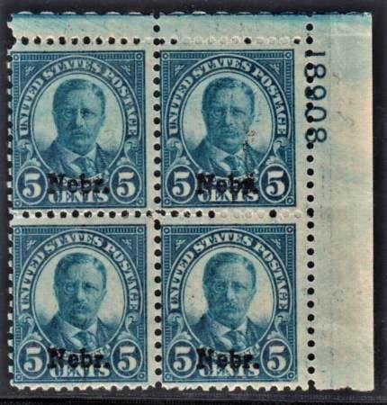 US 674 Mint NH Ave – F Nebraska Overprint Plate Block # 18908 UR cv $425