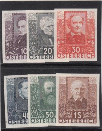 • Austria B93-98 Signed No Gum as Issued, Scarce Imperf Set, 3 Values Have Faint Horizontal Crease