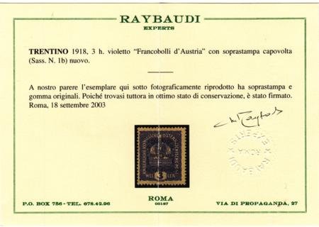Austria N33b Italian Occupation – Trentino Mint LH F – VF Inverted Overprint – Raybaudi Cert cv $125