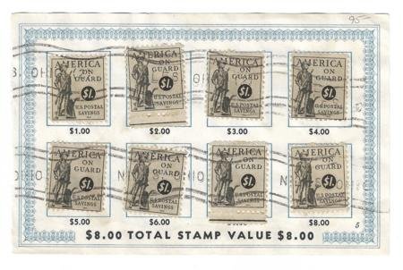 US PS14 Savings Stamps on page 5+6 from horizontal book