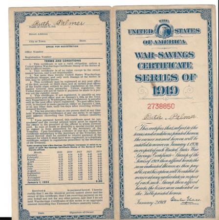 US WS4 2 F – VF stamps affixed to 2 part 1919 folder – fresh