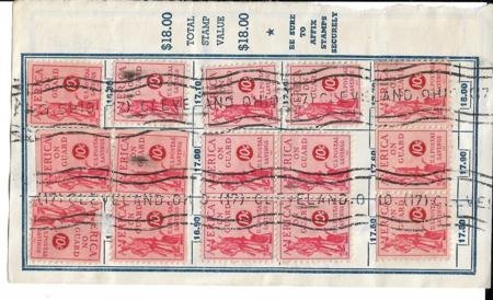 US PS11 Savings Stamps Page from $20 Booklet with 15 stamps on each side – Cleveland, OH roller cancel