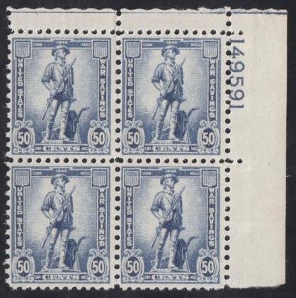 US WS9 Savings Stamp F – VF NH Plate Block cv $22.50