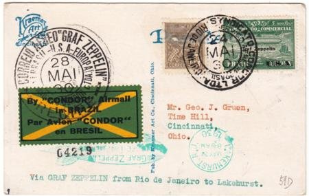 Brazil 1930 Zeppelin Card to USA with Rotated date in Cancel