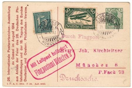 Germany 1922 Early Airmail on Colored 5pf Postal Card from Nurmburg – Munich.