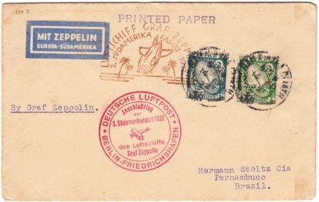 Ireland 1932 3rd South America Zeppelin Flight Through Berlin
