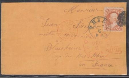 US 71 Well centered stamp on superb cover Phila, PA to France. cv 380.00 transit cancels and backstamps on reverse.