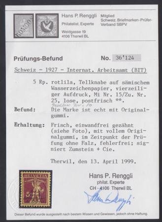 Switzerland Officials 3O4 IT 25 VF – XF NH Mint Renggli Cert. sfr 380.00