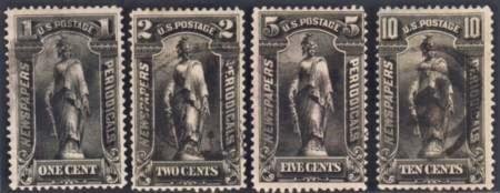 US PR114-20 Newspaper Mint F – VF Used Mostly Handstamp Cancels, All handstamp cancels, except 2c; 10c has corner thin, cv $365.00