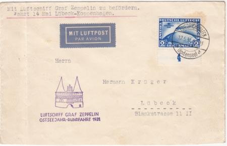 Germany 1931 C38 var. VF on Ostseejahr Flight to Luebeck