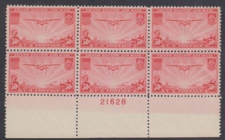 US C22 Airmails VF – XF NH Plate Block of 6 Full Bottom Plate