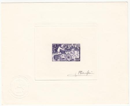 Benin 1978 J48 60fr Signed Artist Die Proof in Purple, Mail Delivery, Bicycle.