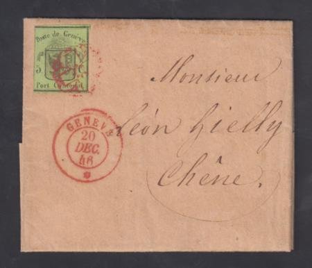 Switzerland 1845-48 Cantonals Sc 2L2 3 Margin sound stamp on VF pristine folded letter – billhead for coffee cv $3400