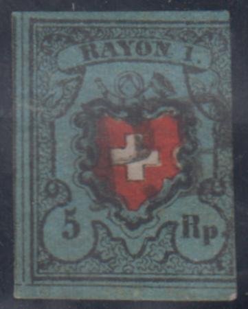 Switzerland 1850 Cantonals 5 Ave – F 3 Large Margins, In at Right Thins cv $1,250