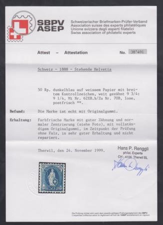 Switzerland 92 (70b) F – VF Renggli Cert. Fresh! Rich Color (cv $3,100)