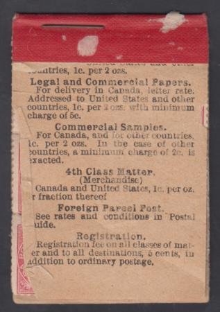 Canada 90A Complete Booklet Ave – F + Mint Hinged cv $2,200 1 pane stuck to interleaving; 1 pane stuck to back paper – panes face opposite directions