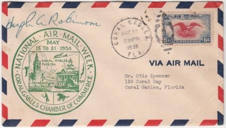 US 1938 (May 20) C23 on National Air Mail Week Cover Signed by Pioneer Aviator Hugh A. Robinson