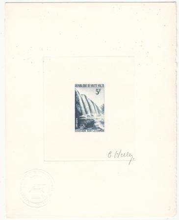 Burkina Faso 1965 Artist Die Proof Scott 139. 5f, Signed proof in dark blue, Comoe Waterfall.