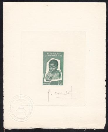 Central Africa 1964 35 20fr Signed Artist Die Proof in Green, Child.