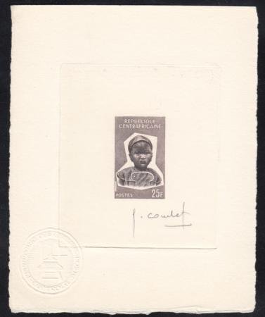 Central Africa 1964 36 25fr Signed Artist Die Proof in Gray, Child.