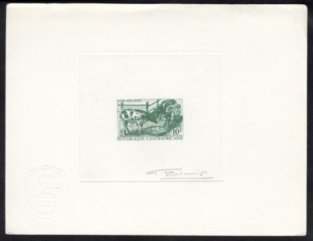 Central Africa 1968 Scott 102 Signed Artist Die Proof in green, 10fr. Baoule Cattle, ANIMALS.