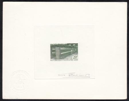 Central Africa 1968 103 20fr Signed Artist Die Proof in green, 15,000 Spindle Spinning Machine.