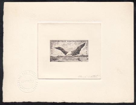 Central Africa 1960 Artist Die Proof : Scott C3, 500fr Signed proof in deep brown, Bird, African Fish Eagle