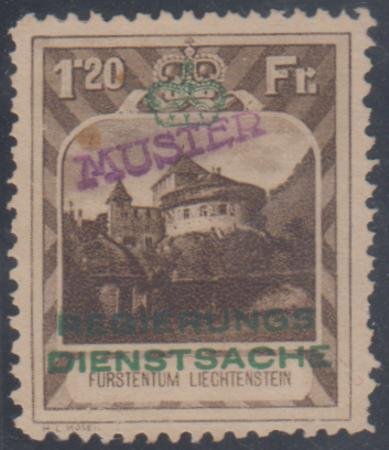 Liechtenstein O8 Overprint Specimen (Muster) – No Gum – Faults